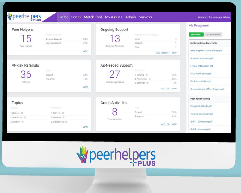 The Peer Helpers PLUS Portal is our secure, cloud-based support tool that houses the program Curriculum, Resources and Activity Logs. The Portal is FERPA and COPPA compliant.